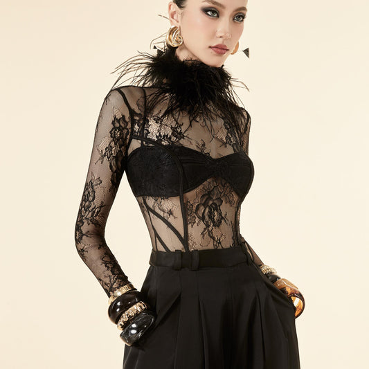 MAEL FEMME WHITE BLACK KENZIE JUMPSUIT TOP