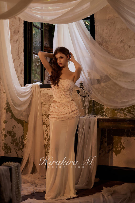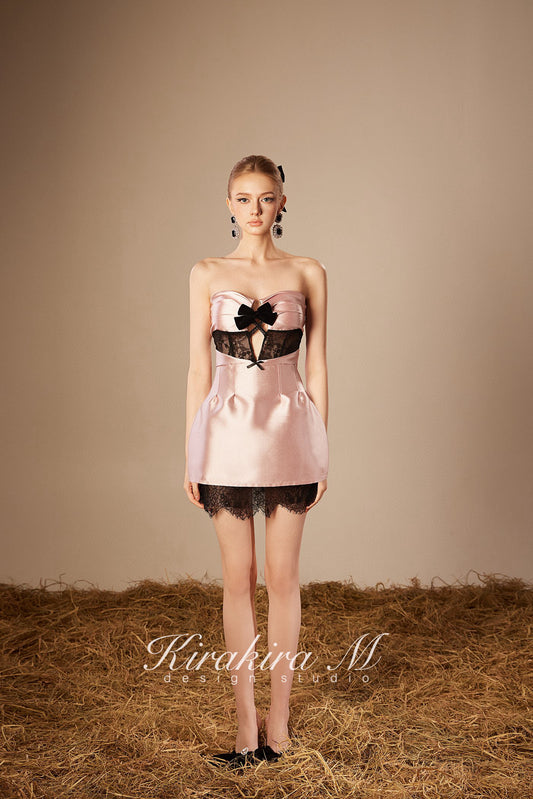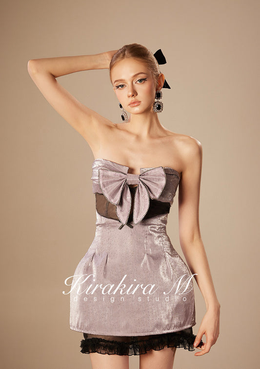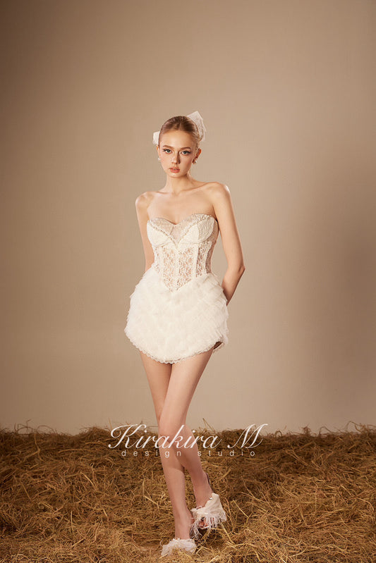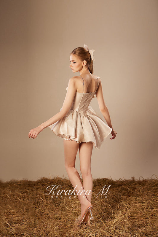 KIRAKIRA M Champagne Mini dress (Free Bottoms + Bow Hairpin)