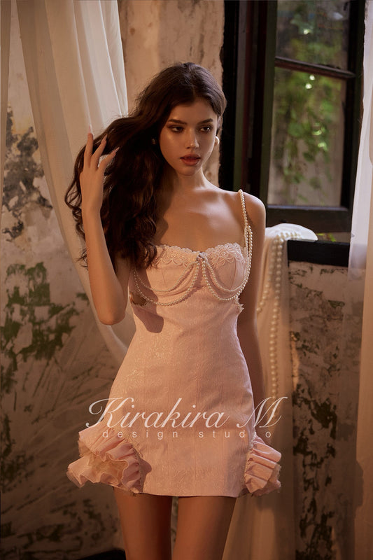 Kirakira M Pink Fishbone Rhinestone Patchwork Strappy Sheath mini Dress with Bottoms