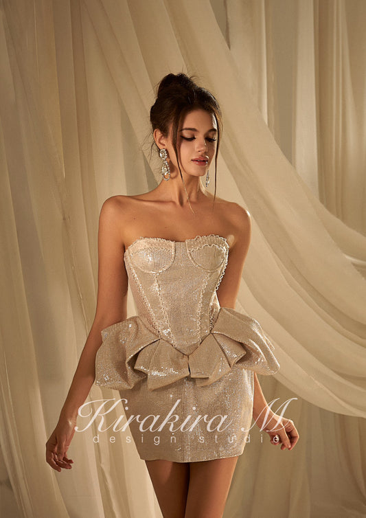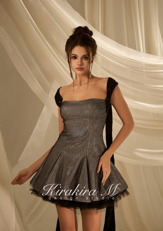 KIRAKIRA M Silver grey sparkle backless mini dress