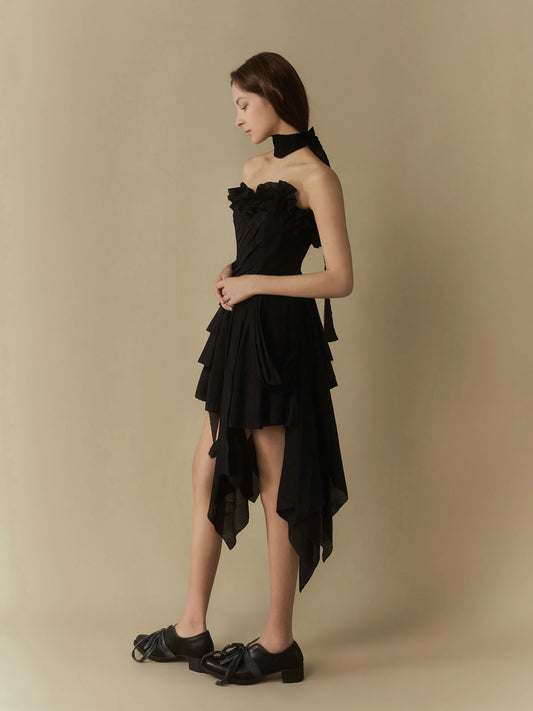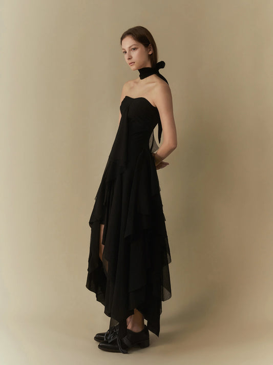 ELYWOOD BLACK LAYERING BANDEAU MAXI DRESS