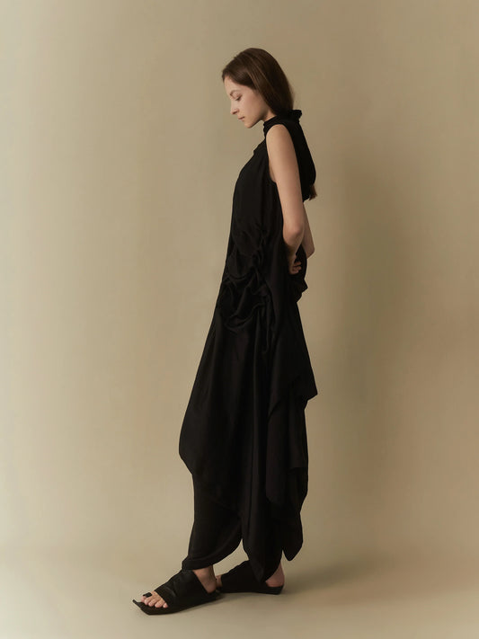 ELYWOOD BLACK PLEATED SEAM MAXI DRESS