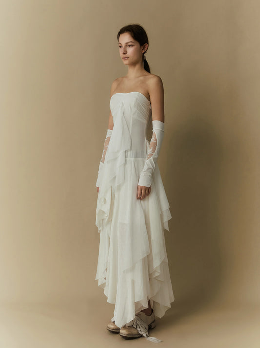 ELYWOOD WHITE LAYERING BANDEAU MAXI DRESS