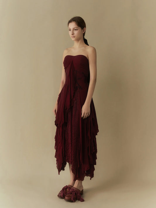 ELYWOOD RED LAYERING BANDEAU MIDI DRESS