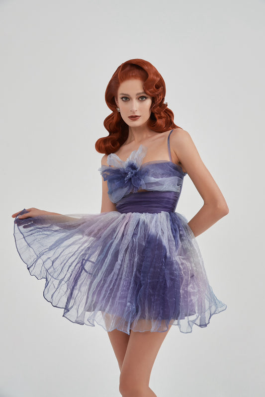 CALLRINDUCK Purple Hanging Neck Mini Dress & Trailing