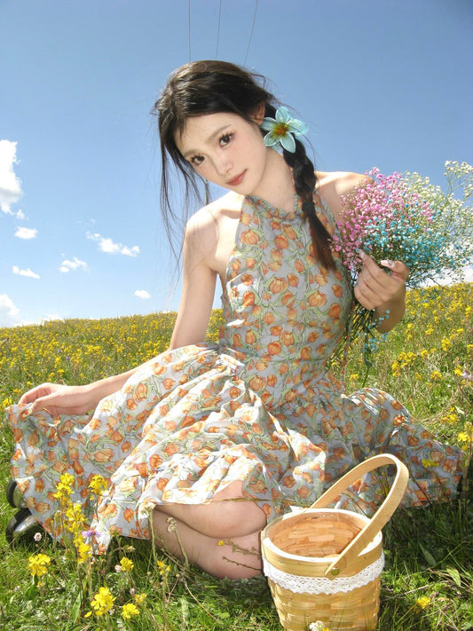 CALLRINDUCK Pink Hanging Neck Mini Dress & Trailing