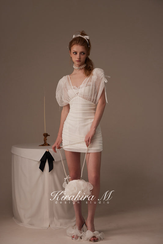 Kirakira M White Deep V Drawstring Slim Fit Dress (2 Wearable)