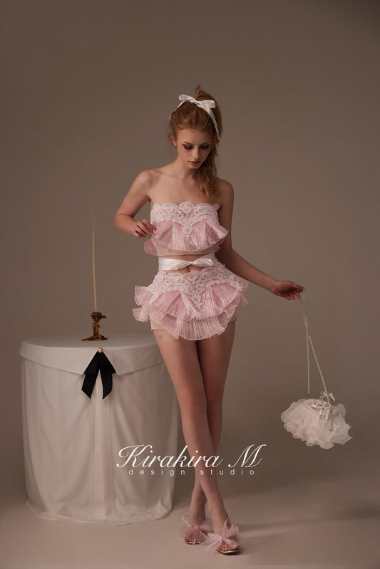 Kirakira M Pink Mermaid Lace Strappy Top & Skirt Pants
