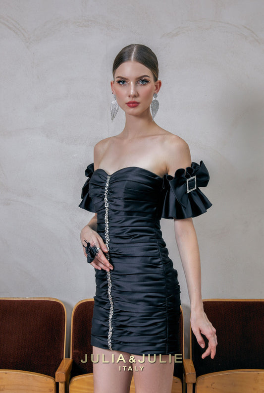 KIRAKIRA M "Milkyway" Black glitter tweed mini dress (undie included)
