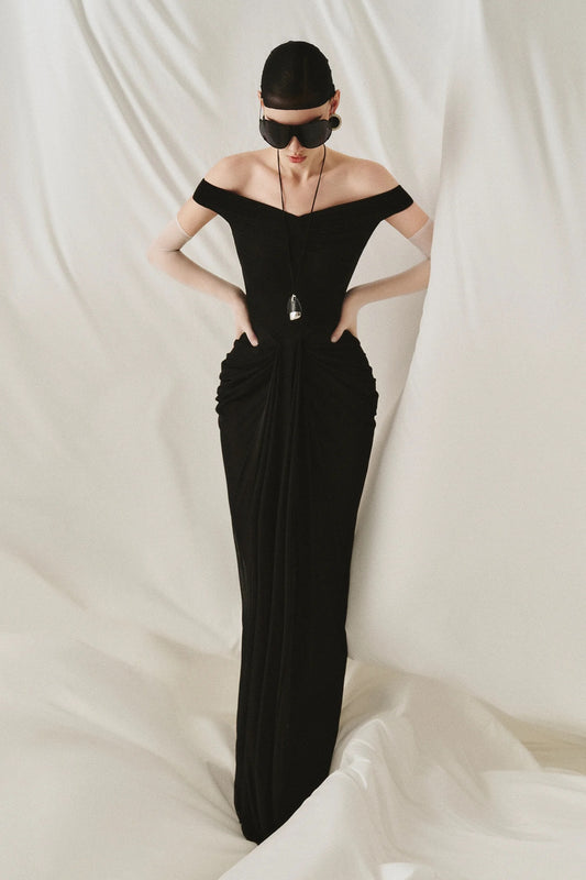 DELICIAE Black Elegant Minimalist Athena Maxi Dress