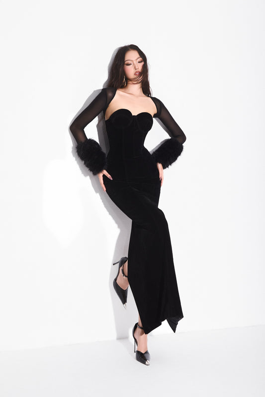 DELICIAE Black Elegant Minimalist Delys Maxi Dress