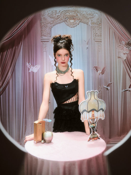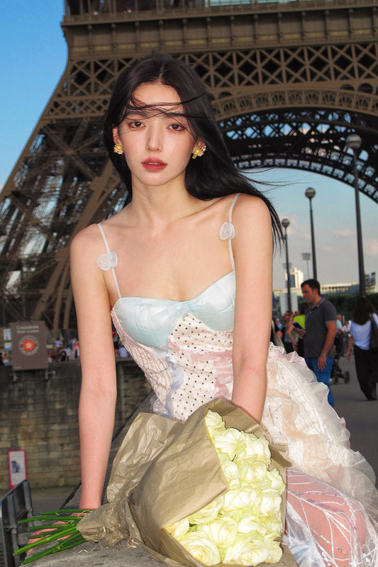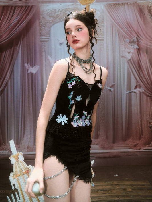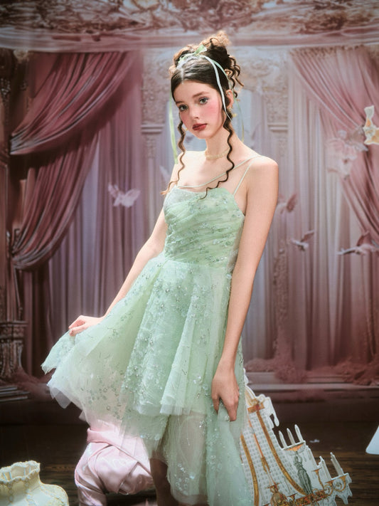 Chengchengling Pink Floral Butterfly Embroidered Mini Dress