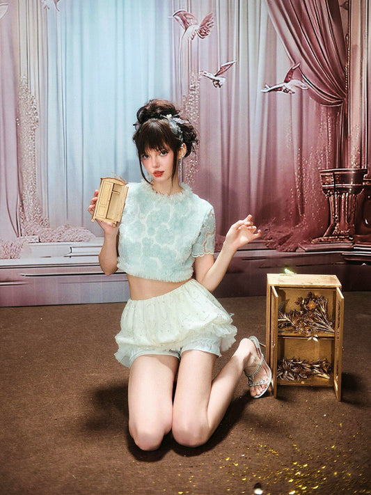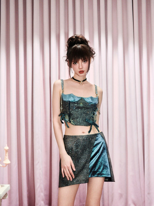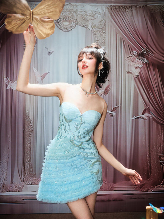 Chengchengling Blue Beaded Wavy Sequin Mini Dress
