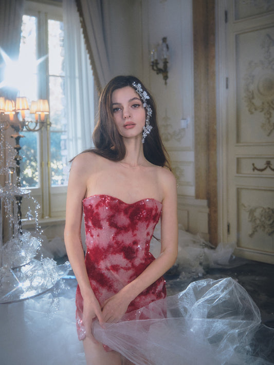 Chengchengling Red Hand-embroidered Velvet Mini Dress
