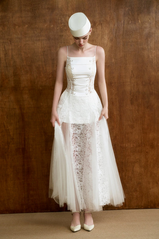 CICI Wite Elegant Vacation Ivoria With Cape Midi Dress