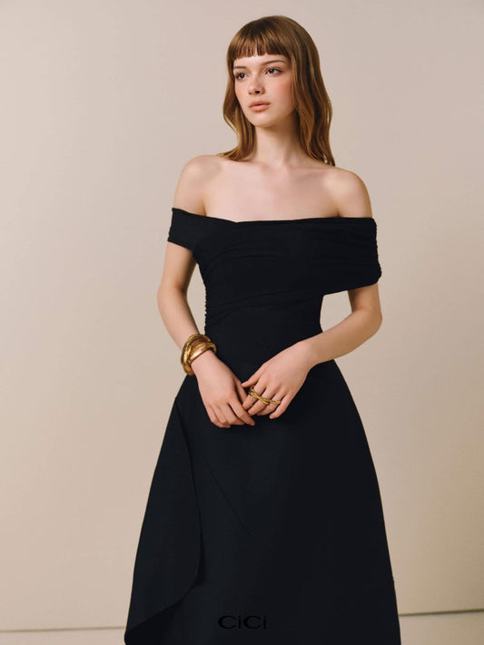 CICI BLACK NANCY Off-Shoulder Midi Dress
