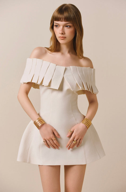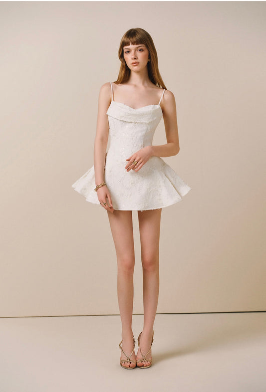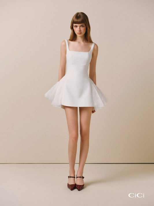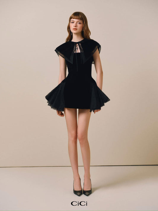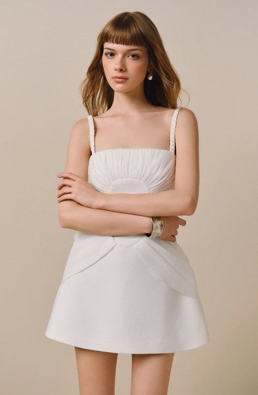 CICI WHITE BELLONA Mini Dress with Sheer Cape Overlay