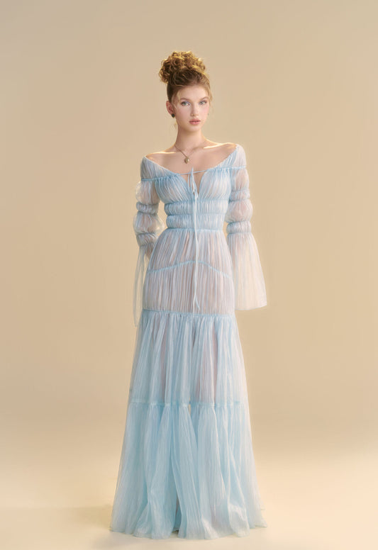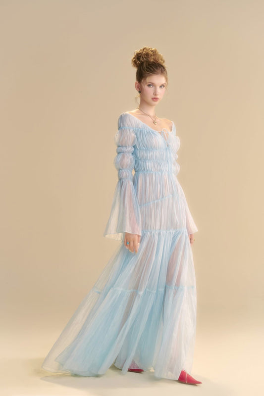 LINH PHUNG Blue Aquarelle Maxi Dress