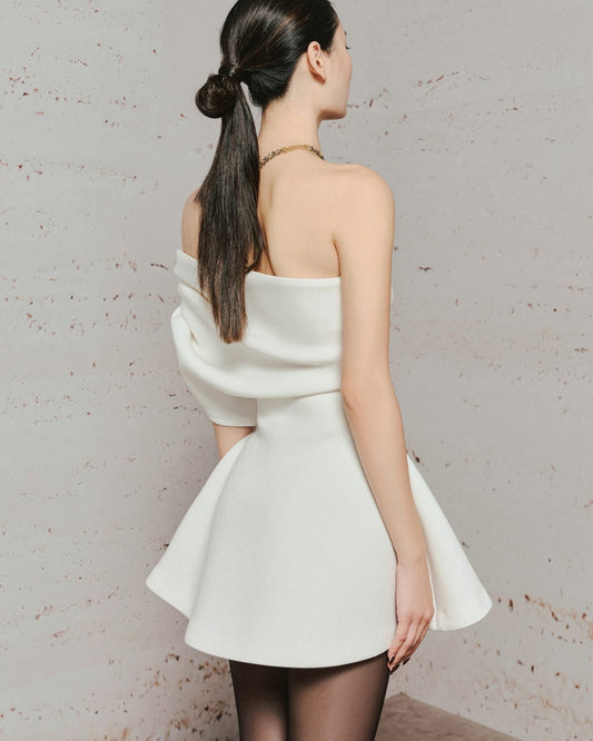 LANE JT Elegant Minimalist White Hestia Off-shoulder Flare Mini Dress