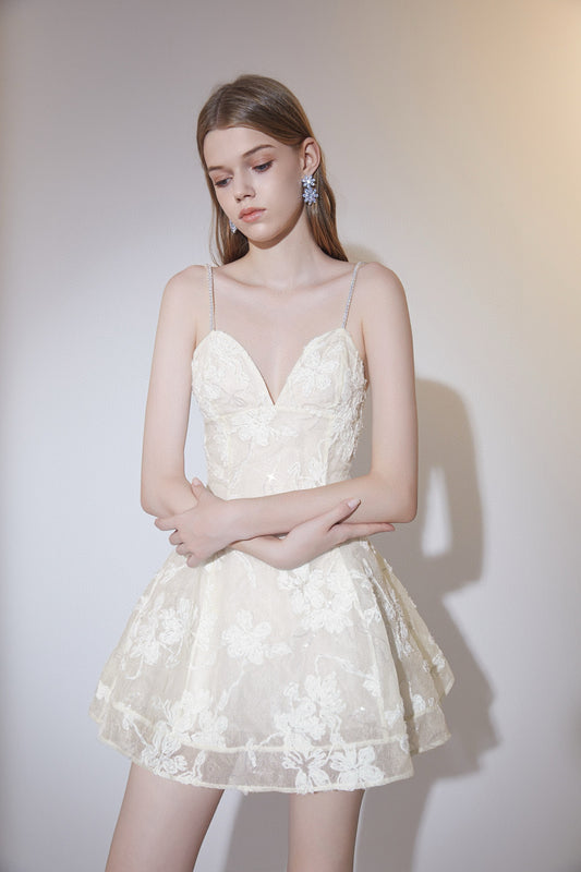 Raffiné Cream Castle Strapless Mini Dress
