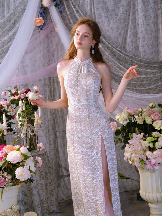 WARDROBE BY CHEN White Wedding Halter Maxi Dress
