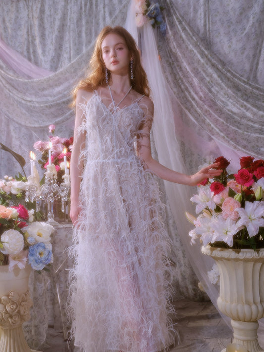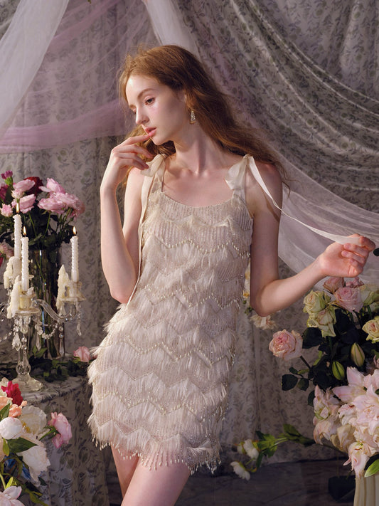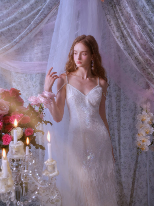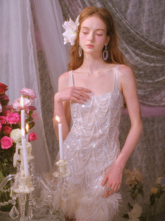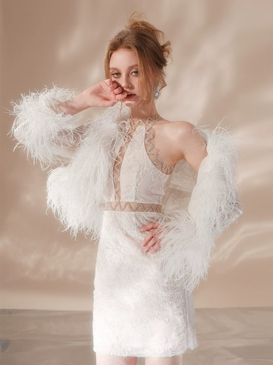 WARDROBE BY CHEN White Feather Party Mini Dress