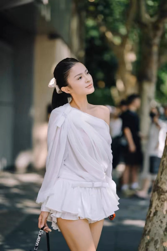 Nana Jacqueline White & Red & Black Slouchy Chiffon Blouse With Mini Skirt Pants