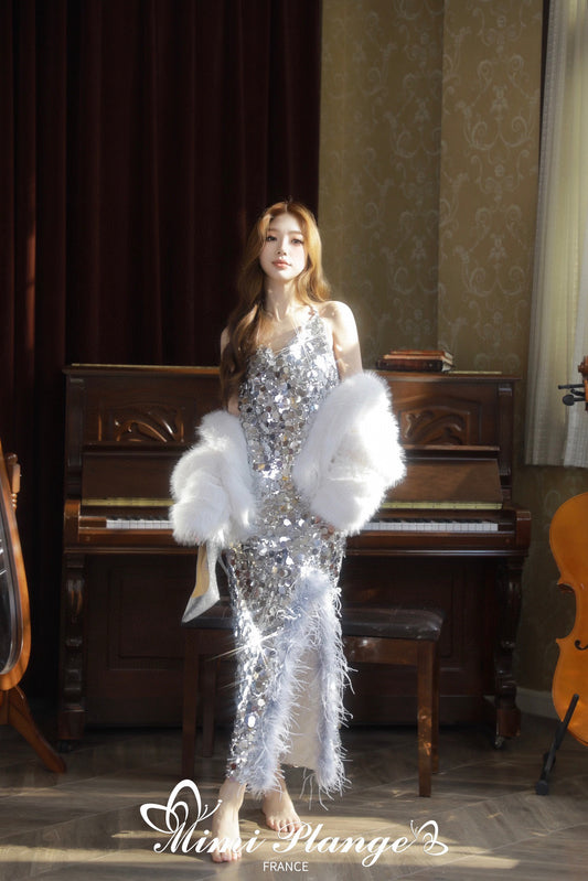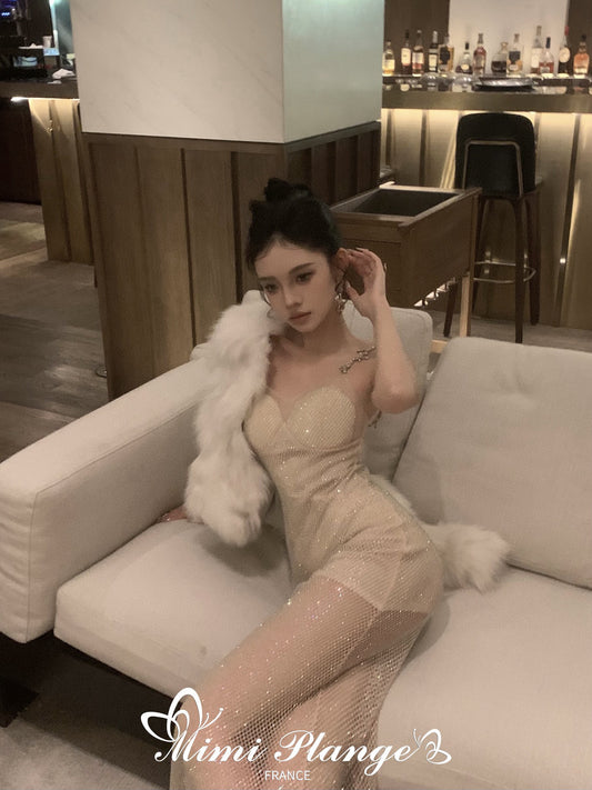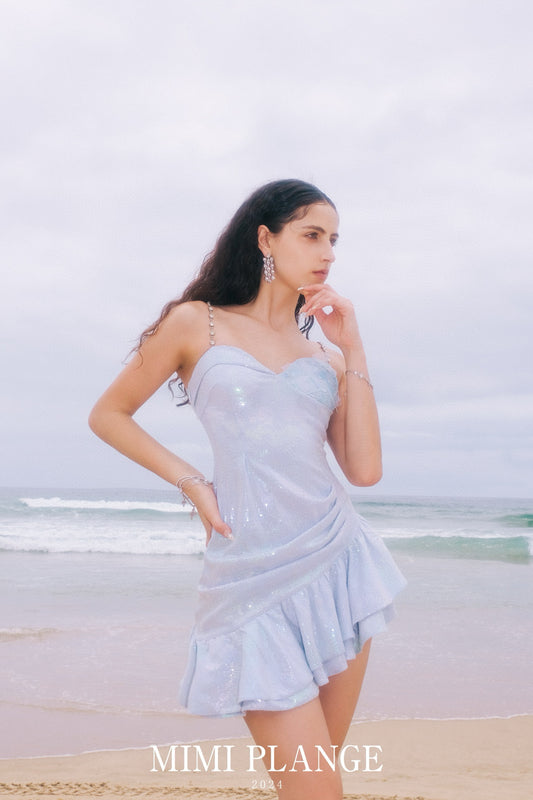 MIMI PLANGE Silver Full Diamonds Mini Dress