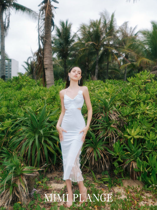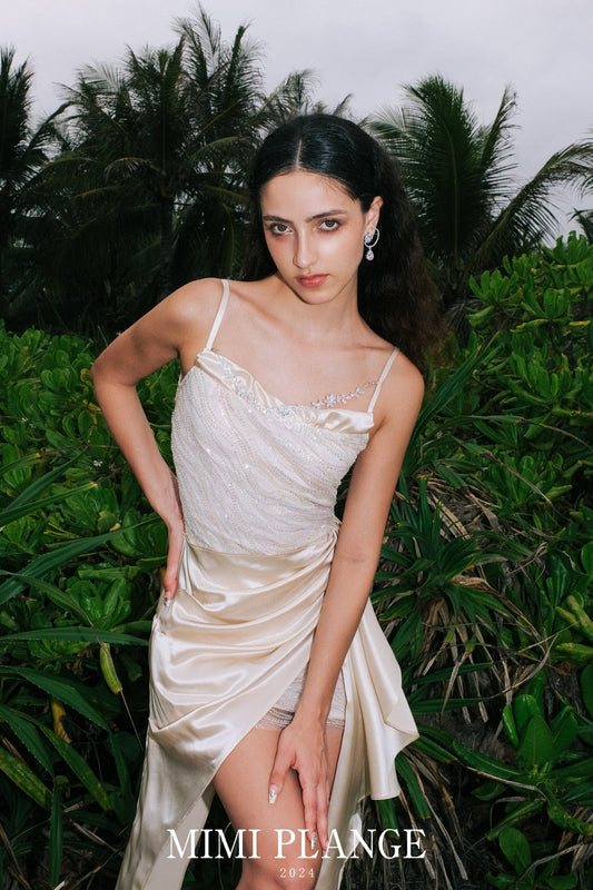 MIMI PLANGE white floral hand-beaded camisole mini dress