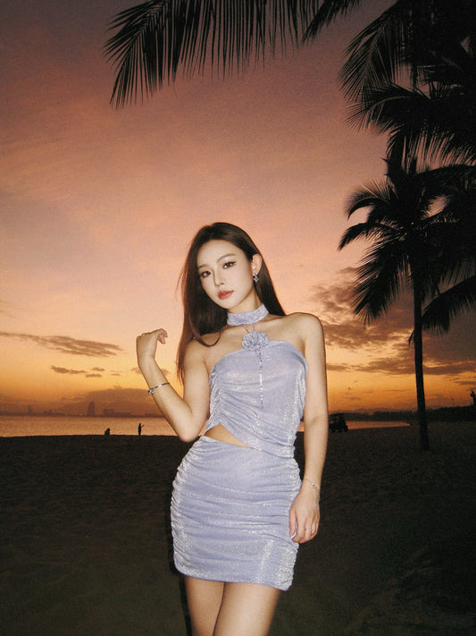 MIMI PLANGE Purple Spice Girl Set Hanging Neck Top Star Wrap Skirt
