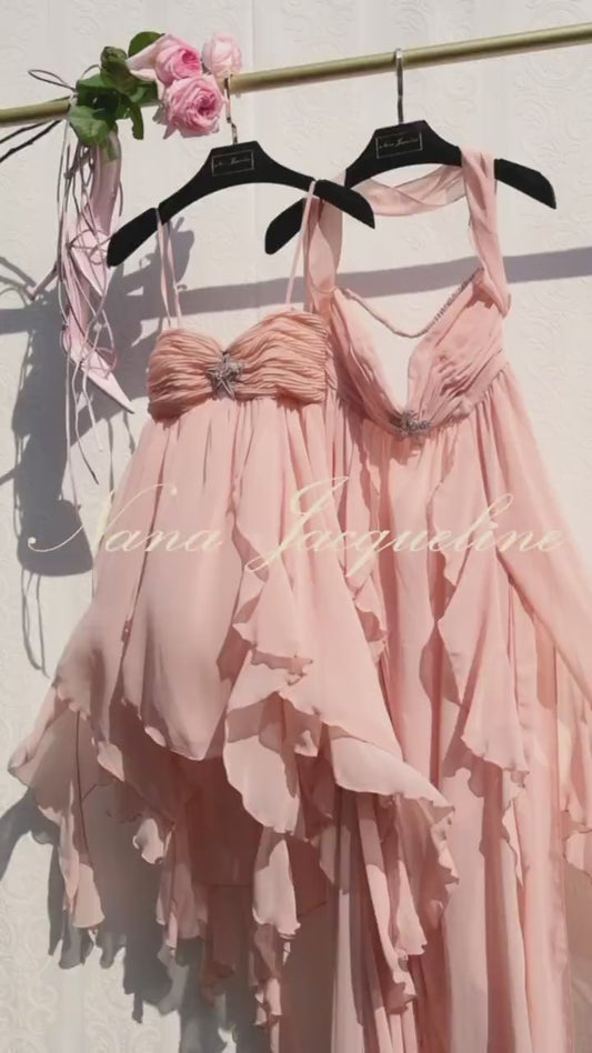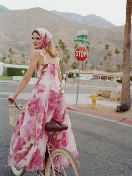 Nana Jacqueline Pink Stringy selvedge sling print maxi dress (with head ornament)