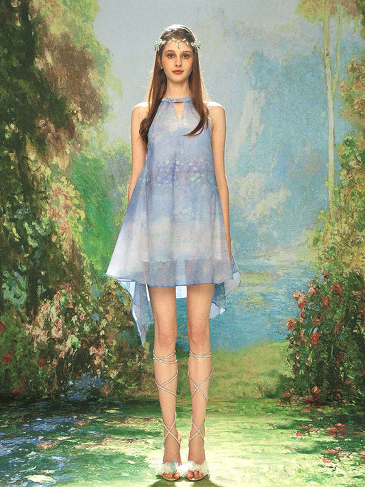 KINGWEN blue water lily mini dress