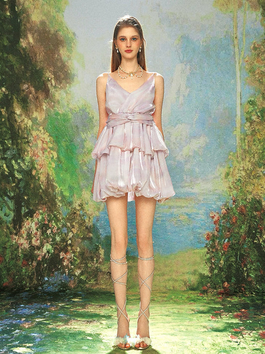 KINGWEN Pink Aqua Satin Mini Dress