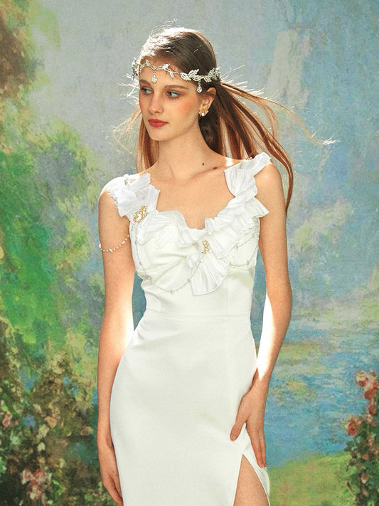 KINGWEN white ruffled midi dress