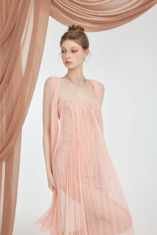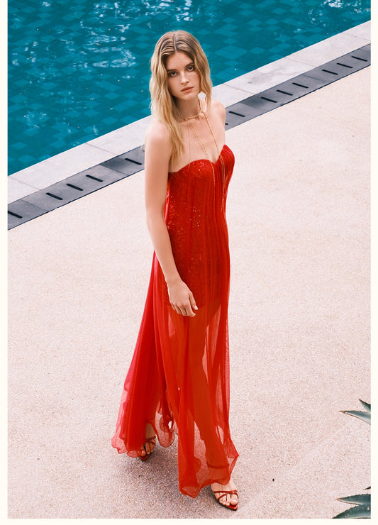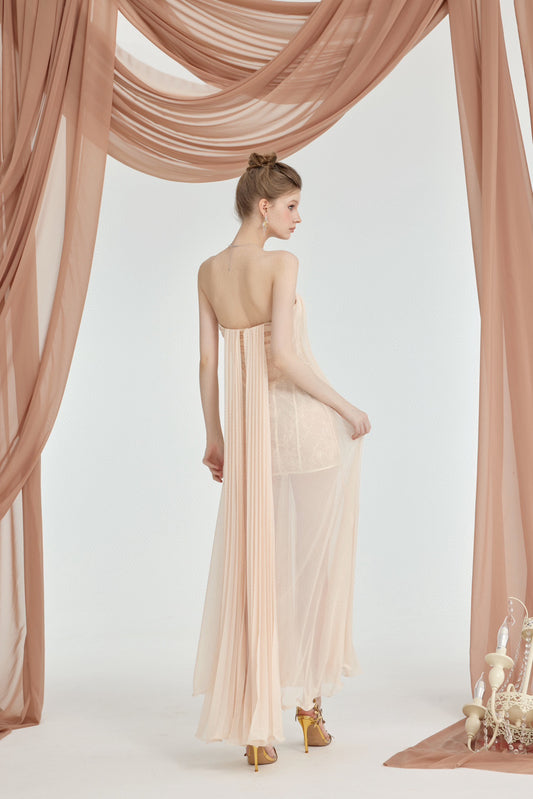 SHEERLUCK NUDE MAXI VACATION DRESS