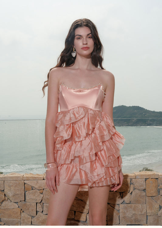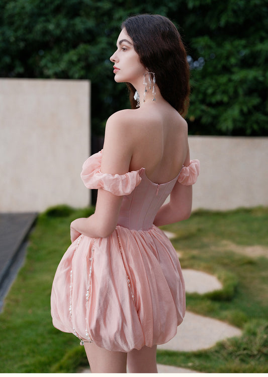 SheerLuck White & Pink Tahlia Waist-Cinching Puff Mini Dress