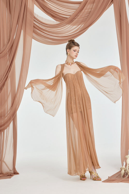 SHEERLUCK BROWN MAXI VACATION DRESS