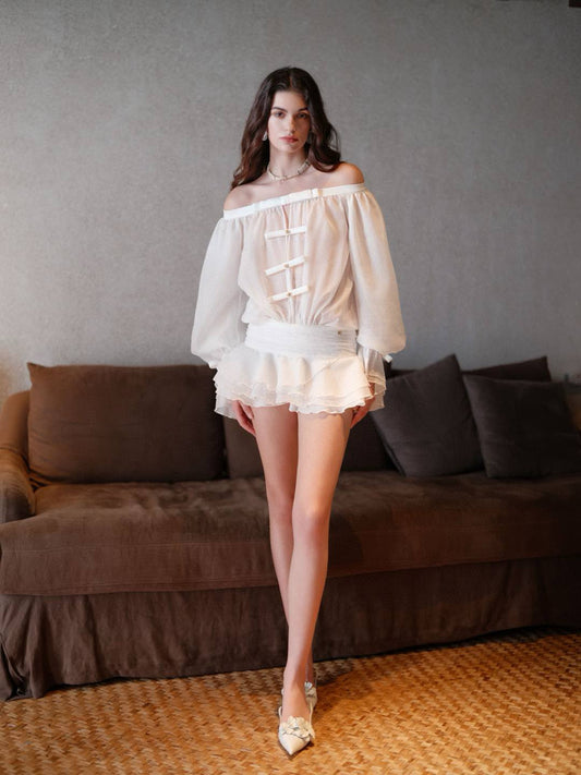 SheerLuck White& Red Monaco Satin and Lace Ribbon Sleevelet Mini Dress