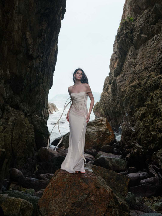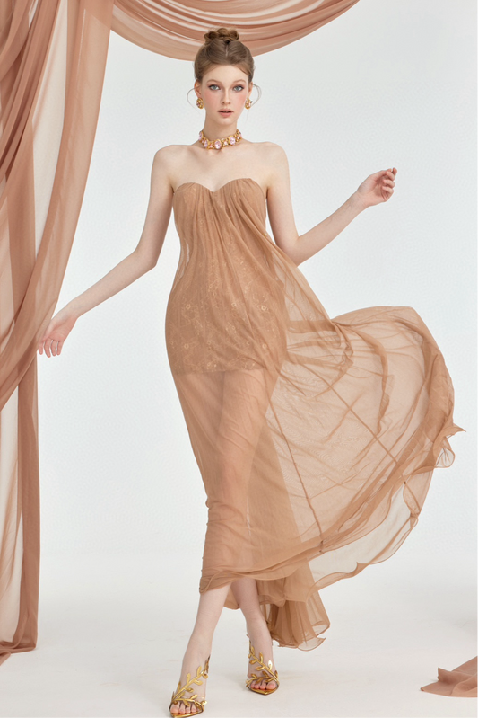 SHEERLUCK NUDE VACATION MAXI DRESS