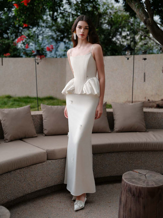 SHEERLUCK White Zali Satin Set Satin Top& Skirt