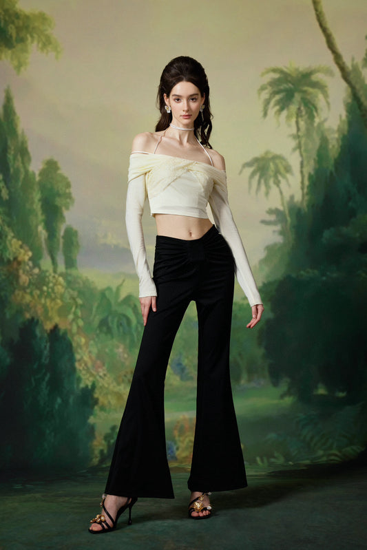 SHEERLUCK White| Pink| Black Lace Patchwork One Shoulder Long Sleeve Top