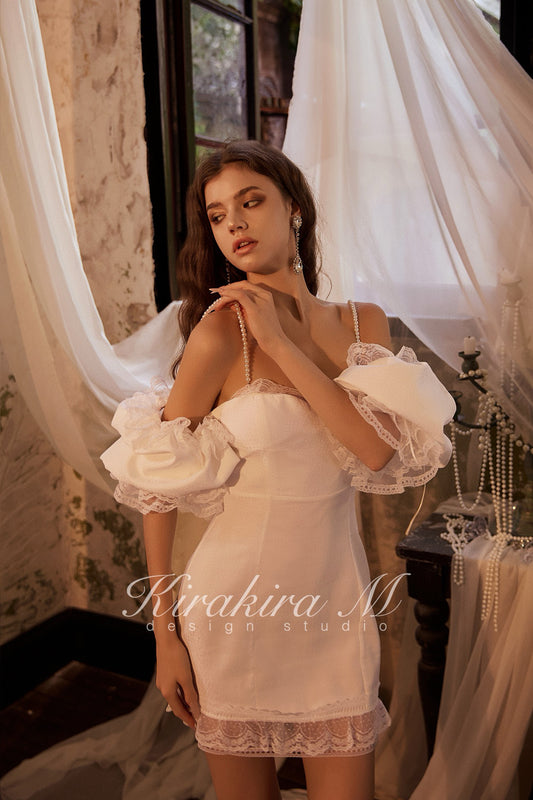 KIRAKIRA M White Bubble Sleeve Mini Dress