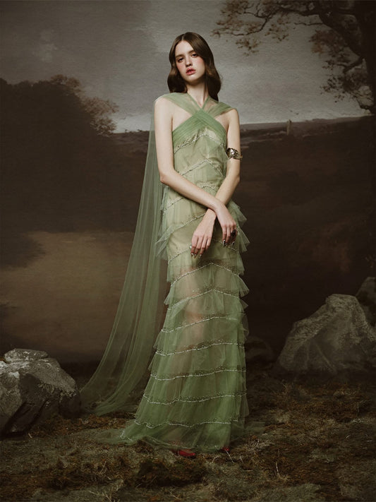 LINH PHUNG Green Sabrina Maxi Dress
