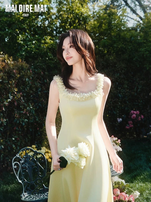 MAI DIRE MAI Yellow Bow Diamond Mini Dress