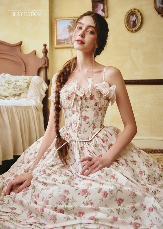 Raffiné White Poliana Cross Stitched Tucked Midi Dress