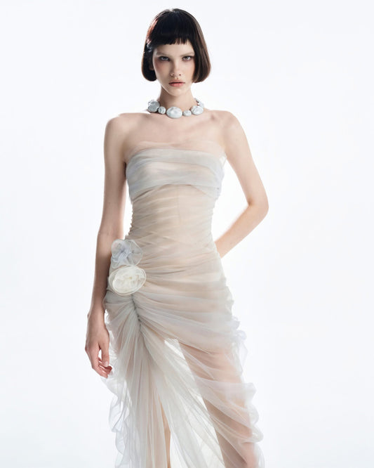 JEAN SOO White Studded Diamonds Strapless Low Waist Mini Dress