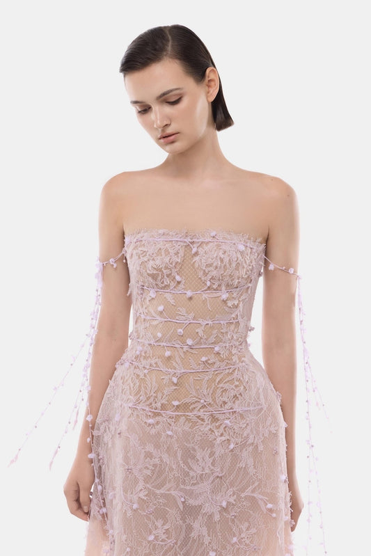 MONTSAND Nude Vacation Elegant Lace V-neck Maxi Dress