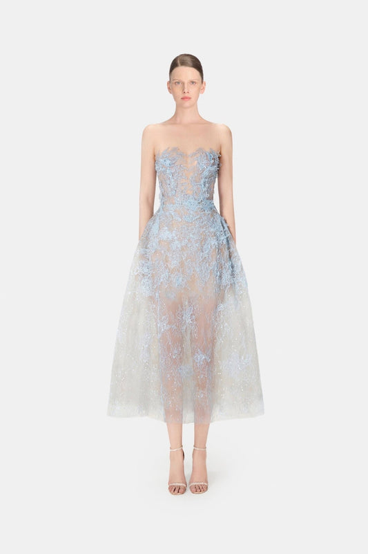 MONTSAND Blue Beaded Lace Midi Dress