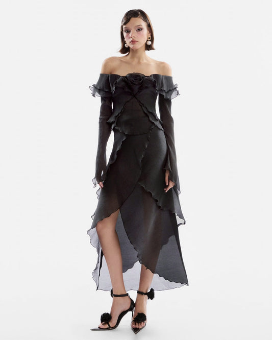 Musthave Black Flared Off Shoulder Top& Pleated Skirt