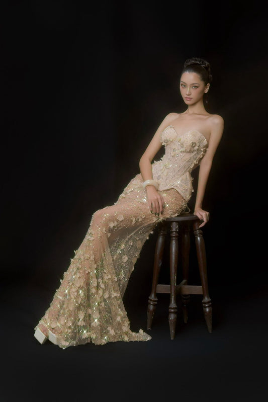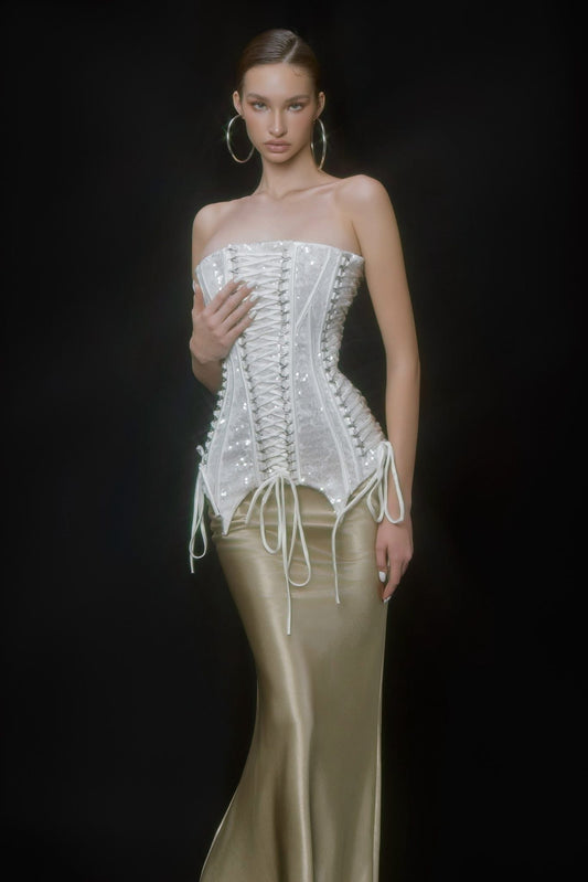 SISSY NATION Sweet Elegant Fairycore Cream Francesca Corset Maxi Dress